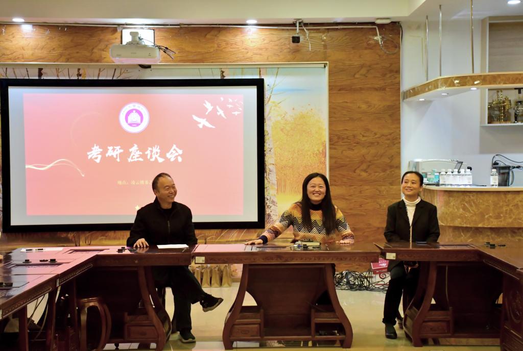 为帮助考研学子明晰方向、缓解压力,文学院于11月26日晚在凌云楼茶艺室举办考研专题座谈会。文学院党委副书记郑辉、学生科科长周莹、22级辅导员周立丙与备考学生参与活动。