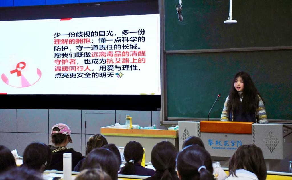 为筑牢新生健康防护防线,增强防艾意识,文学院于2025年11月24日晚在西苑勤学楼J2-1教室举办“防艾宣传教育”讲座,医学院主讲,文学院2025级全体新生参加本次讲座。