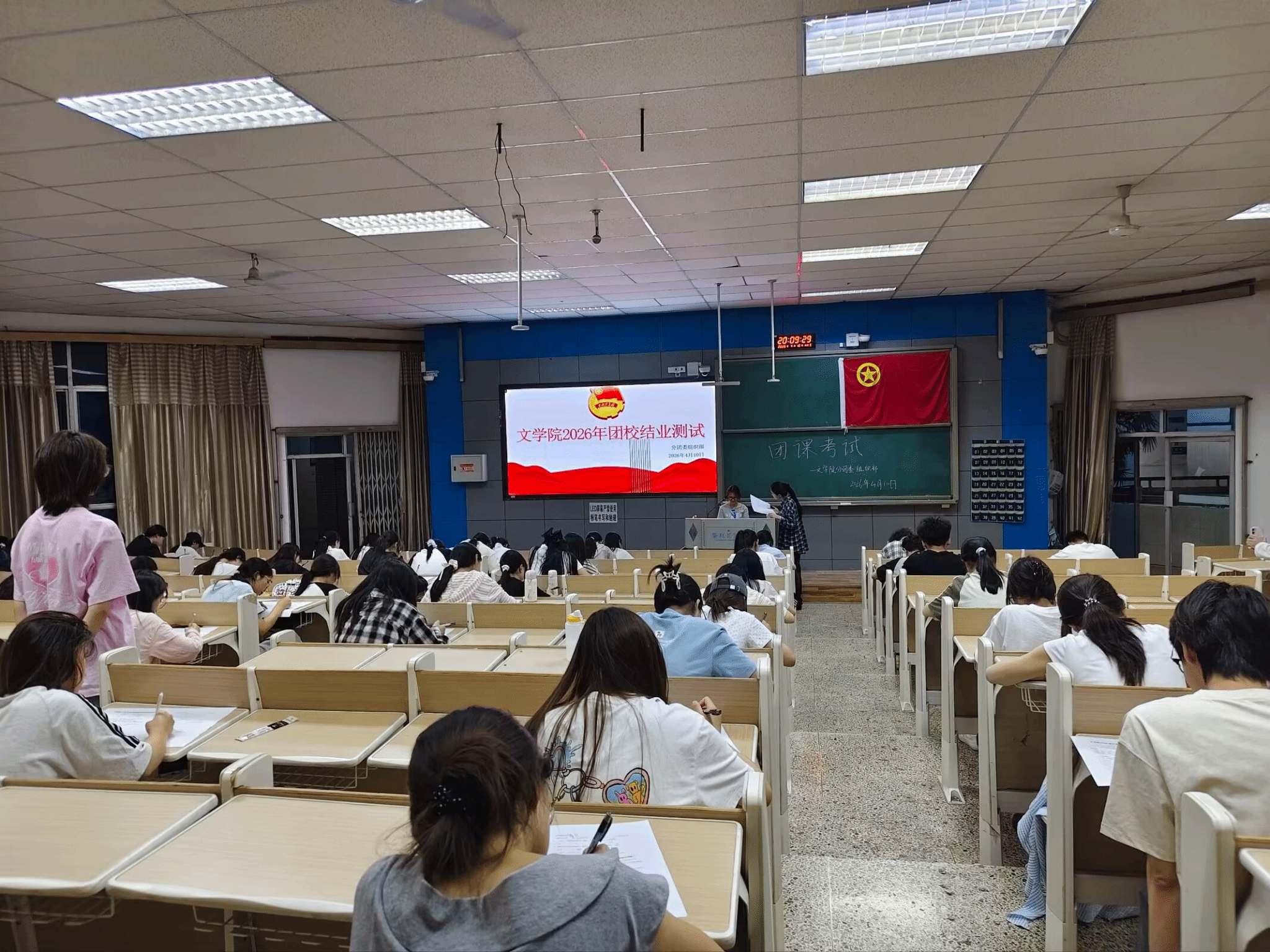考试现场秩序井然、氛围严肃庄重。学员们严格遵守考场纪律,认真审题、沉着作答,以严谨认真的态度完成答卷,笔尖流转间尽显对团的赤诚与向组织靠拢的坚定决心,充分展现了文学院青年学子昂扬向上的精神风貌。