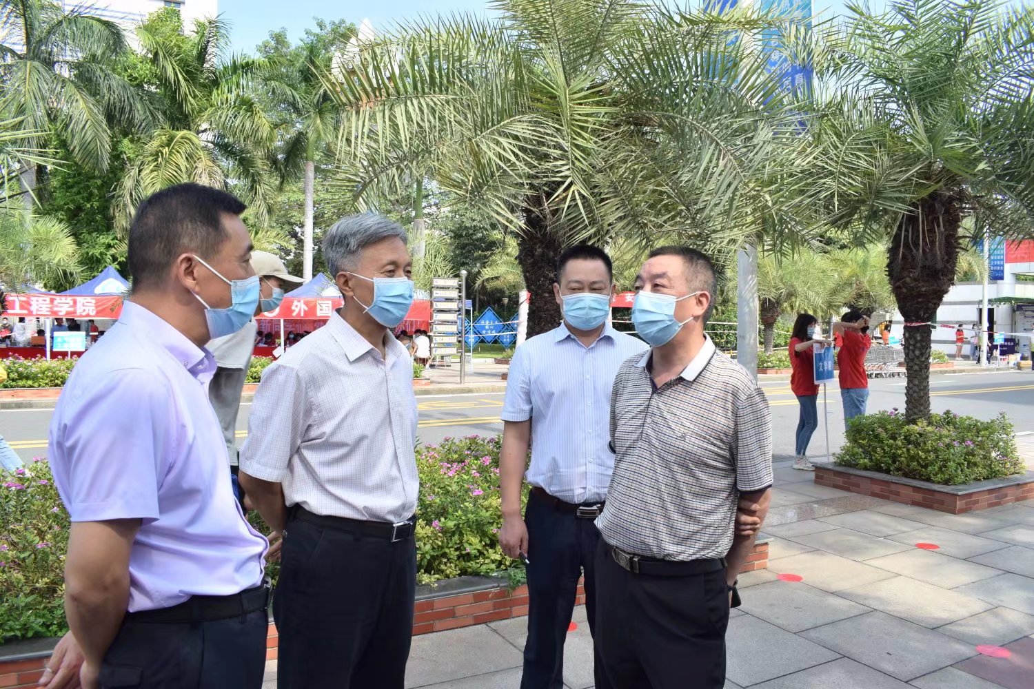 2021年9月8日,文学院迎新工作仍旧如火如荼的进行着。党委副书记、校长王曙光等校领导与文学院领导莅临迎新现场指导工作。校领导询问了2021级新生迎新报到情况,对我院迎新工作的顺利开展表示肯定。我院迎新工作人员坚守岗位,各司其职,井然有序地为新生办理各项入学手续。部分昨日到达的新生被工作人员的热情所感染,毅然加入迎新工作队伍中,展示了文学院学子优良传统的传承。